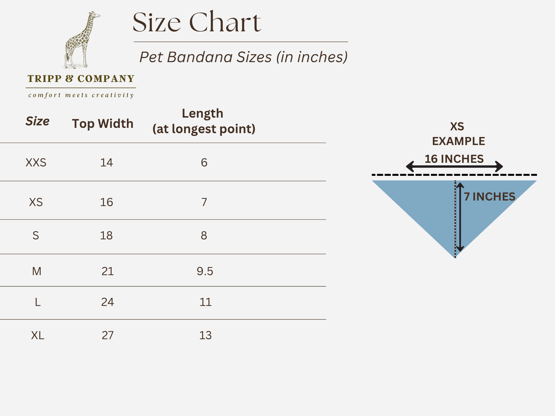 SIZING INFO FOR BANDANAS: see size chart in listing.